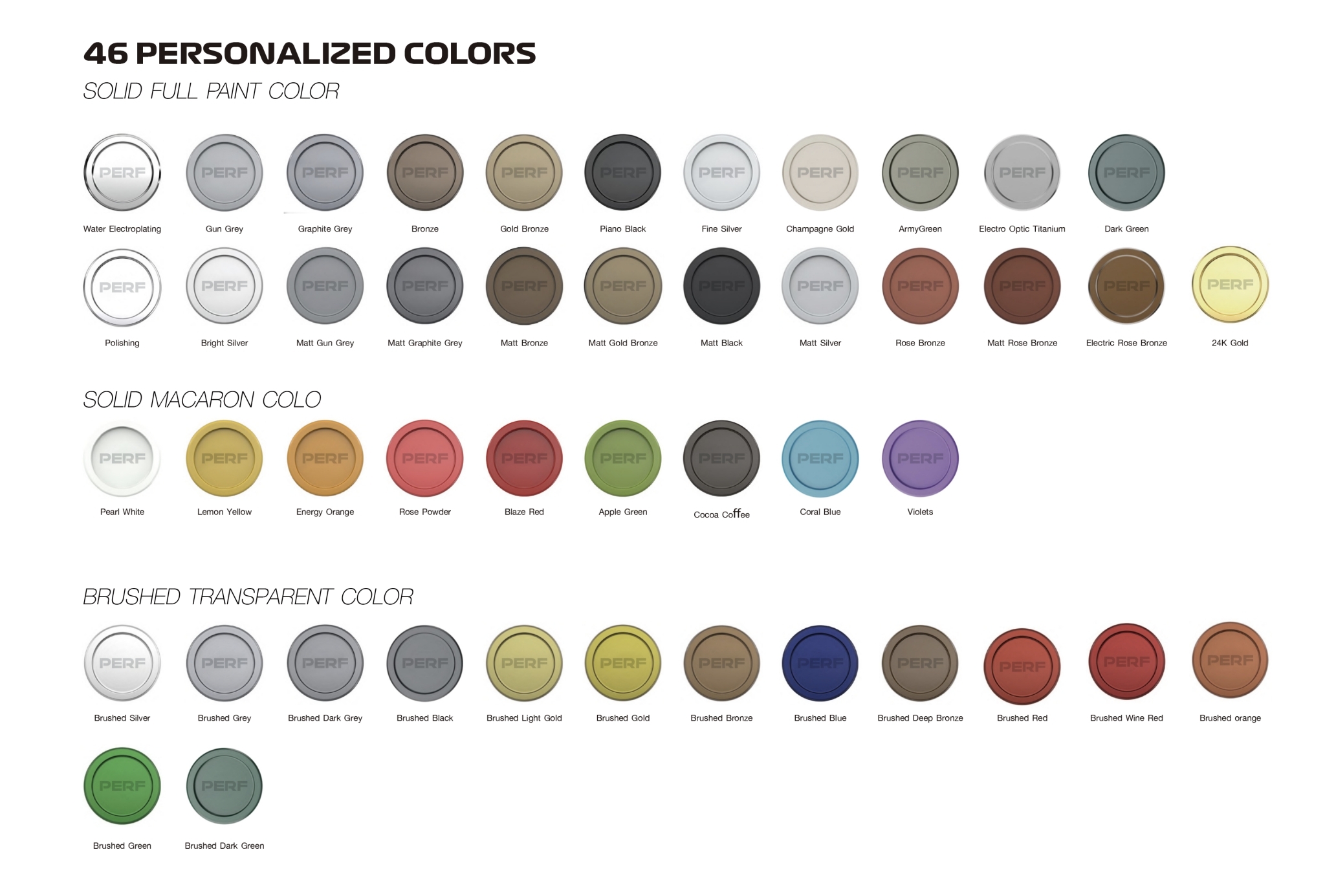 At PERF wheels, you can customized the wheel specification including width, offset and a choice of 46 individual colors according to you preferences.